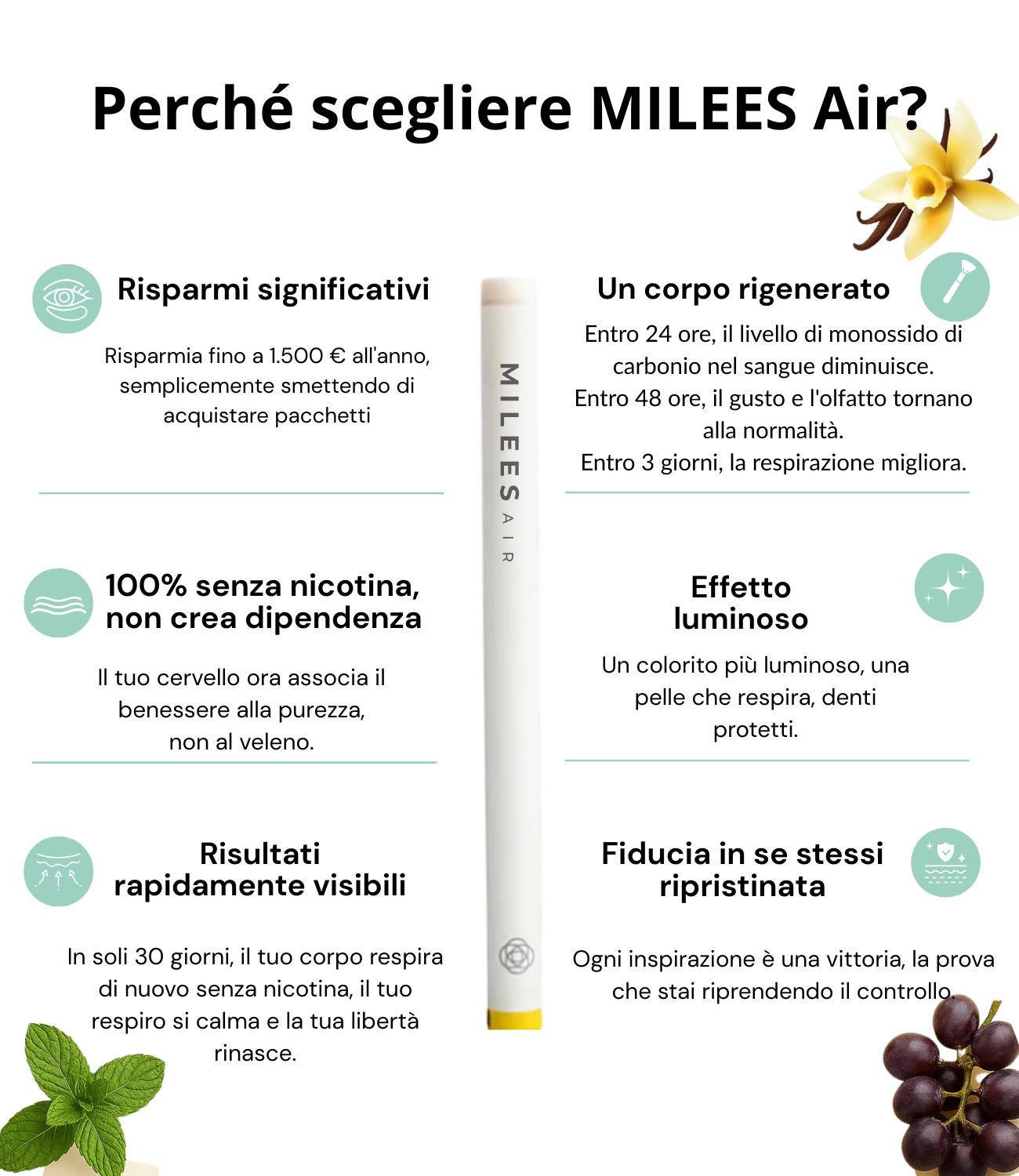 Sì. Milees Air non contiene nicotina né additivi nocivi.